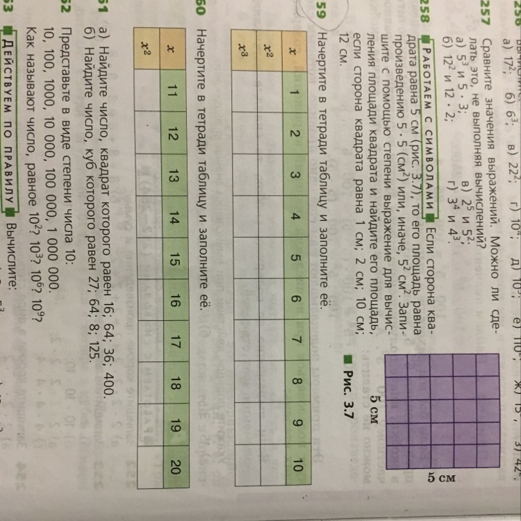 1² = 1 * 1 = 1; 2² = 2 * 2 = 4; 3² = 9; 4² = 16; 5² = 25; 6² = 36; 7² = 49; 8² = 64; 9² = 81; 10² = 100.