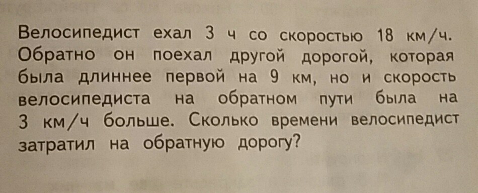 3)18+3=21-скорость велосипедиста на обратном пути