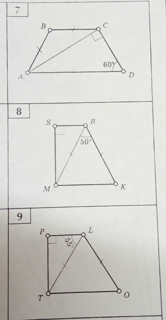 8) LS=90°; LK=65°;LM=90°; LR=115°