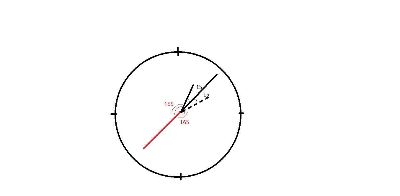 А следовательно есть 2 случая 15° между стрелками или 165° между стрелками.