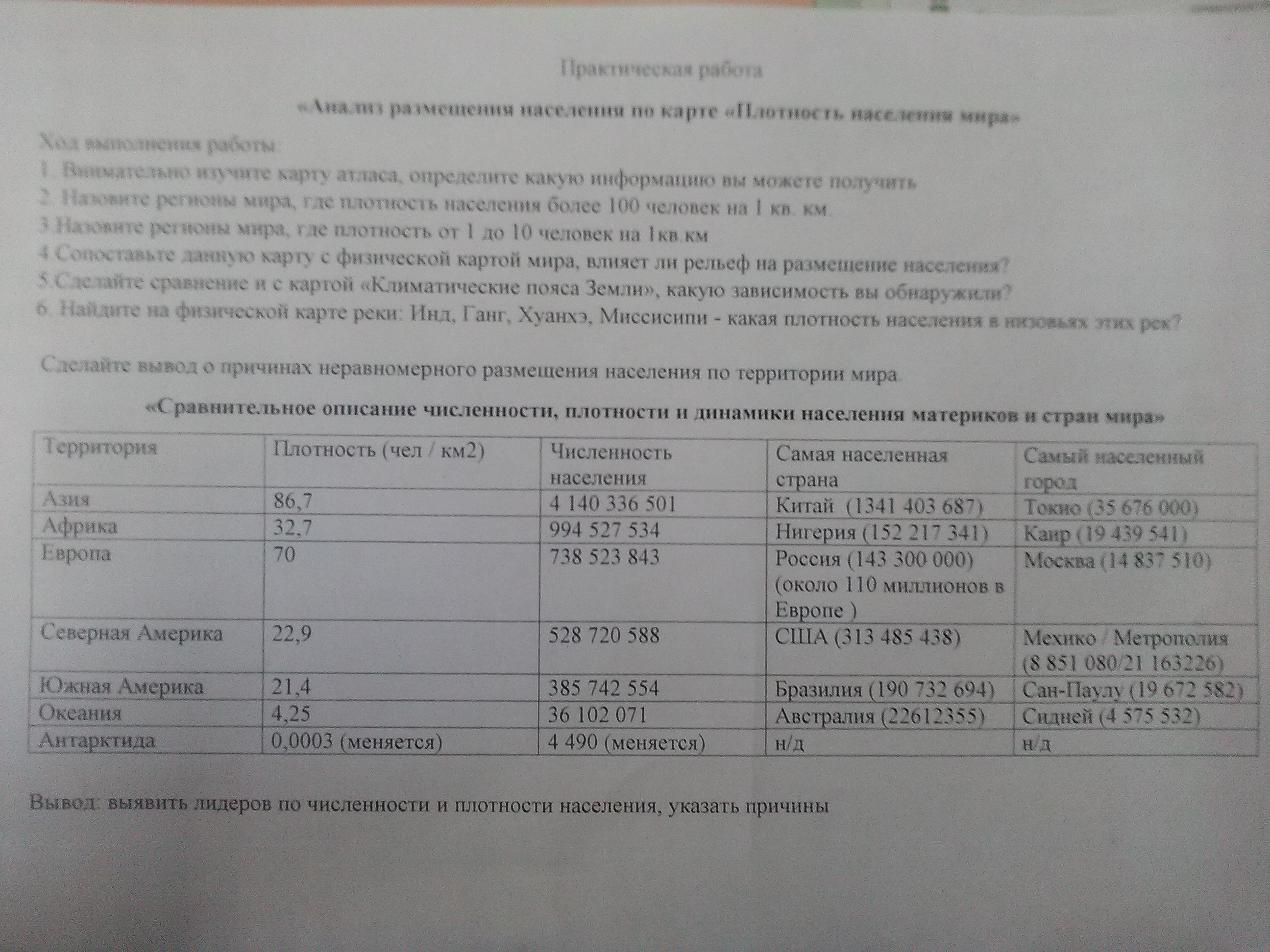 Практическая работа " Анализ размещения населения по карте "Плотность населения мира"