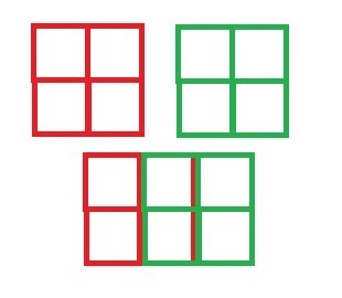 Красный квадрат накладываем на зелёный и получаем два прямоугольника 3 х 1
