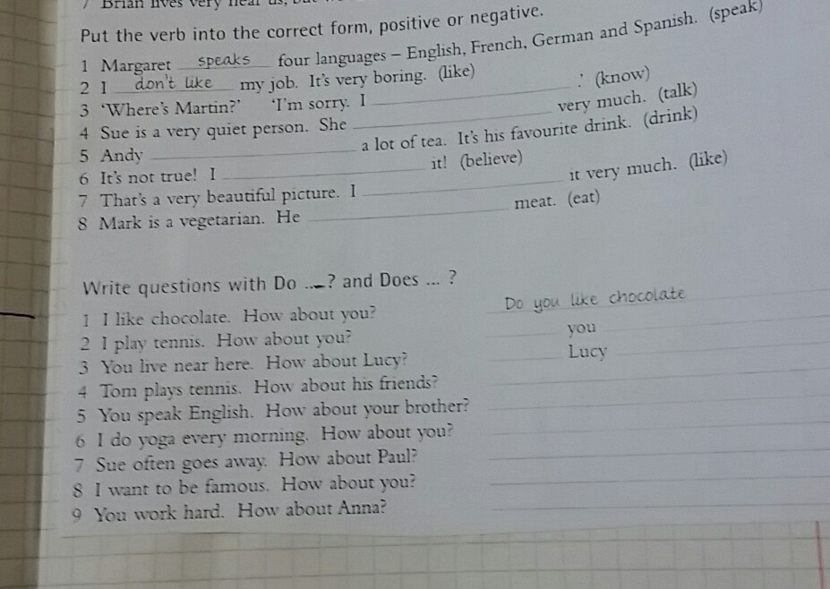 5) Does your brother speak English?