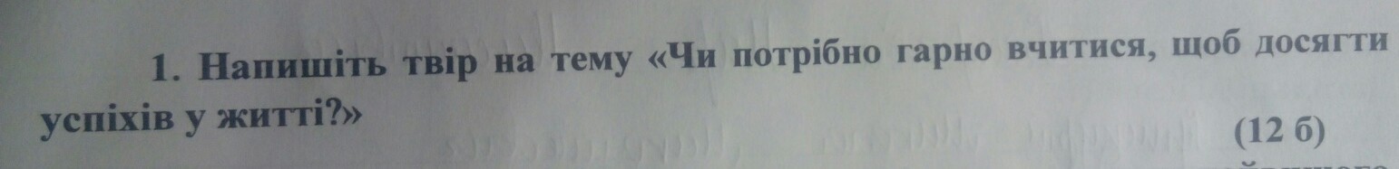 Для нас, школярів, найголосніше завдання на сьогоднішній день - учитися. Нам потрібни міцні знання, щоб потім, завдяки їм отримувати і моральне, і матеріальне задоволення від життя. Навчаючись, мі створюємо наше майбутнє. І яким воно буде - успішним чи ні - залежить саме вид нас. Мудрим є зміст народного прислів'я: "Учись змолоду - пригодиться на старість! " Тому для того, щоб досягти чогось у житті, потрібно вчитися.