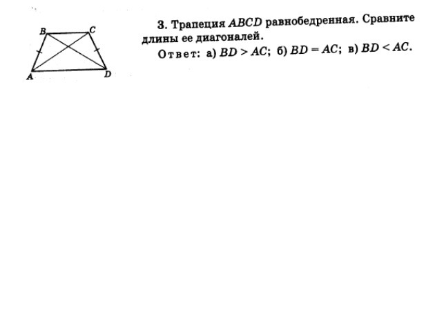 Поскольку трапеция равнобедренная, то ее диагонали равны. Тоисть ответ б