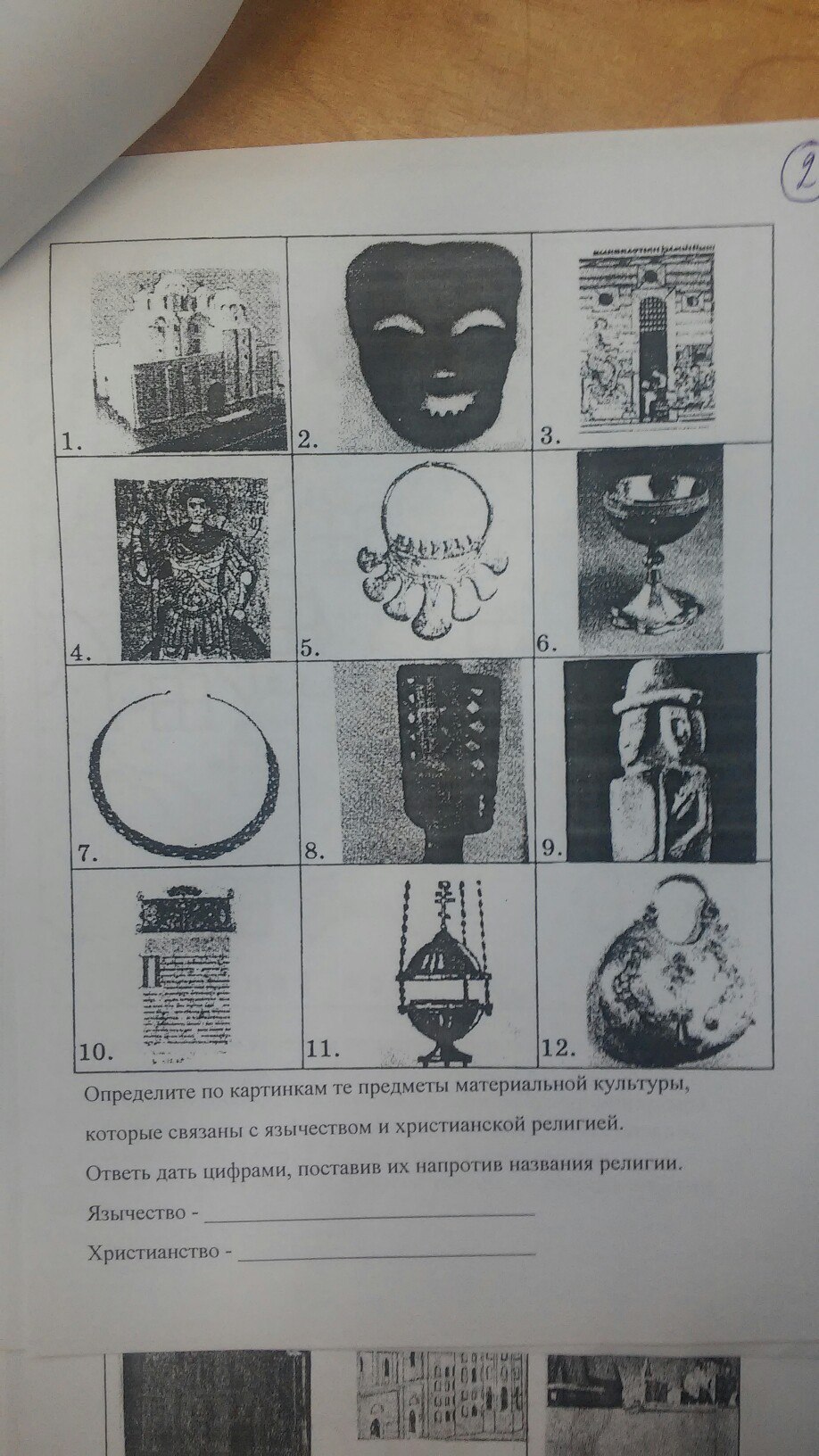 История. Древняя Русь. Какие предметы относятся к язычеству, а какие к христианству? Названия давать не нужно, просто цифрами