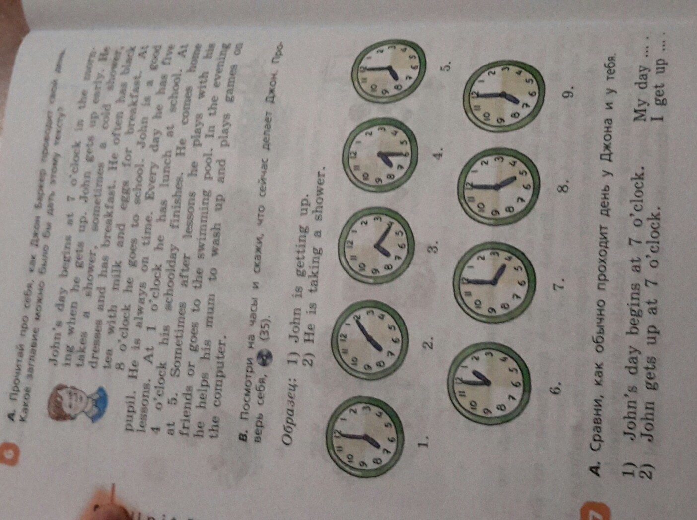 День Джона начинается в 7 часов утра. Джон просыпается очень рано. Он принимает душ, и в скором времени холодный душ, одевается и идет завтракать. Он пил черный чай и ел яйца на завтрак.