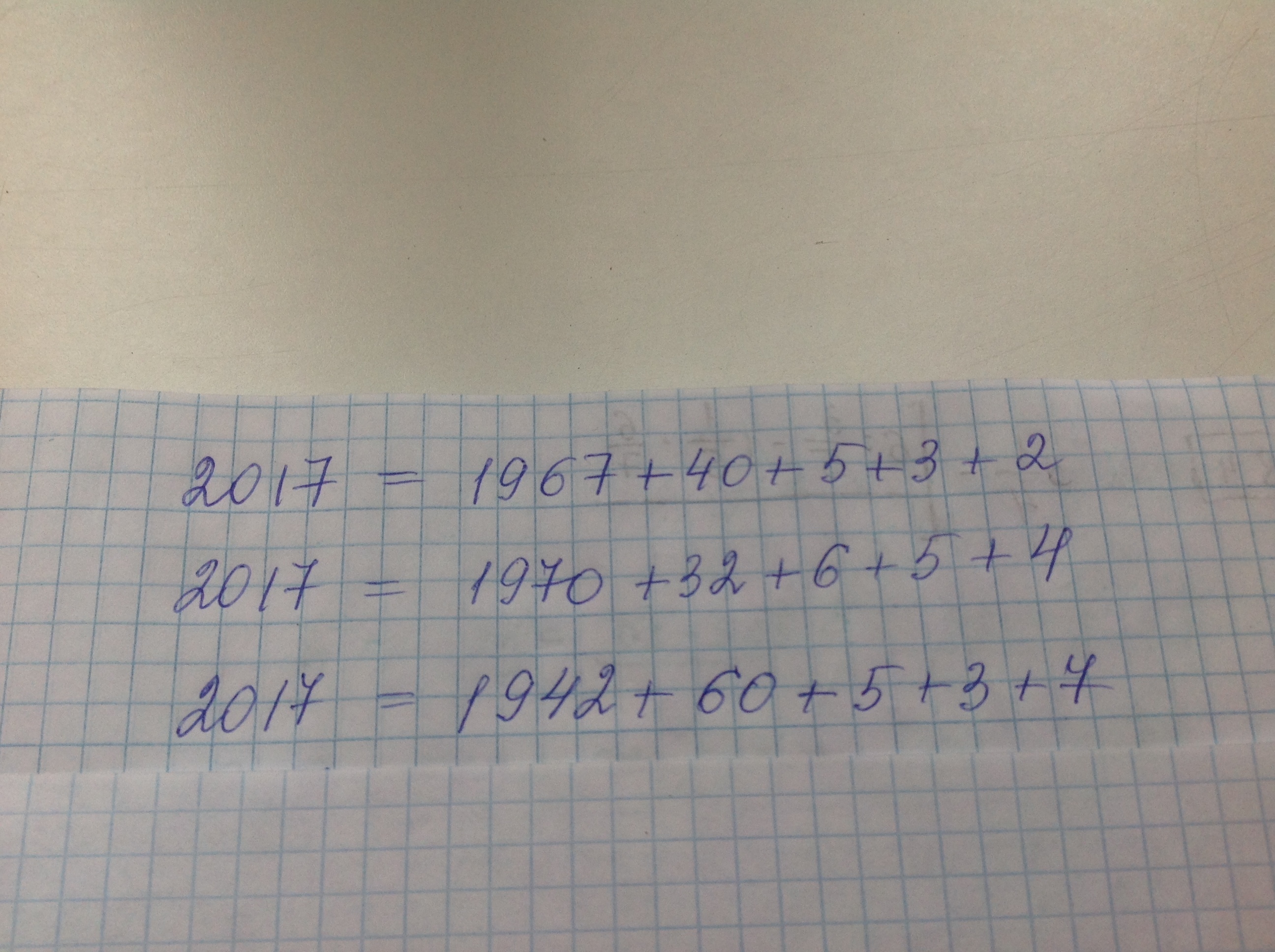 Представьте число 2017 в виде суммы пяти натуральных чисел