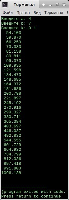 2.) Сложить таблицу значений функции y= e^x - sin(x)cos(x) на промежутке (a,b) с шагом k.