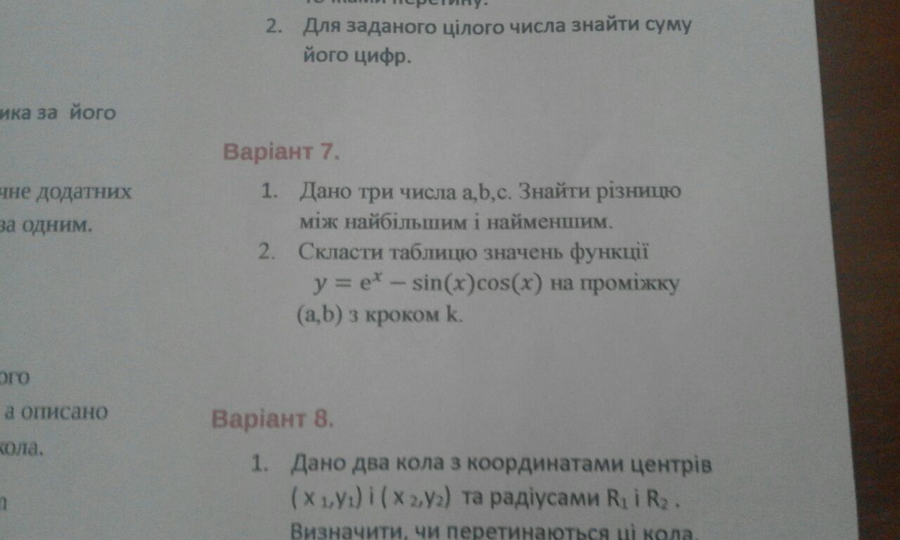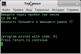 1.)Дано три числа a,b,c. Найти разность между большим и меньшим числом.