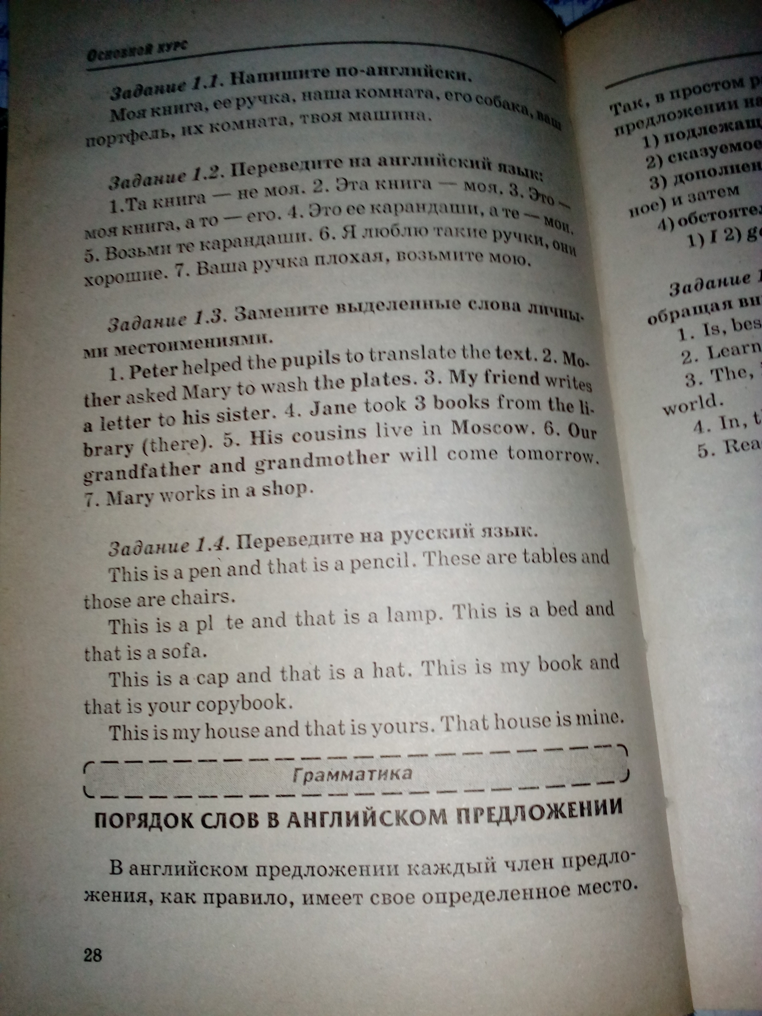 1.4 Это ручка, а (и) там карандаш. Это столы, а (и) там стулья.