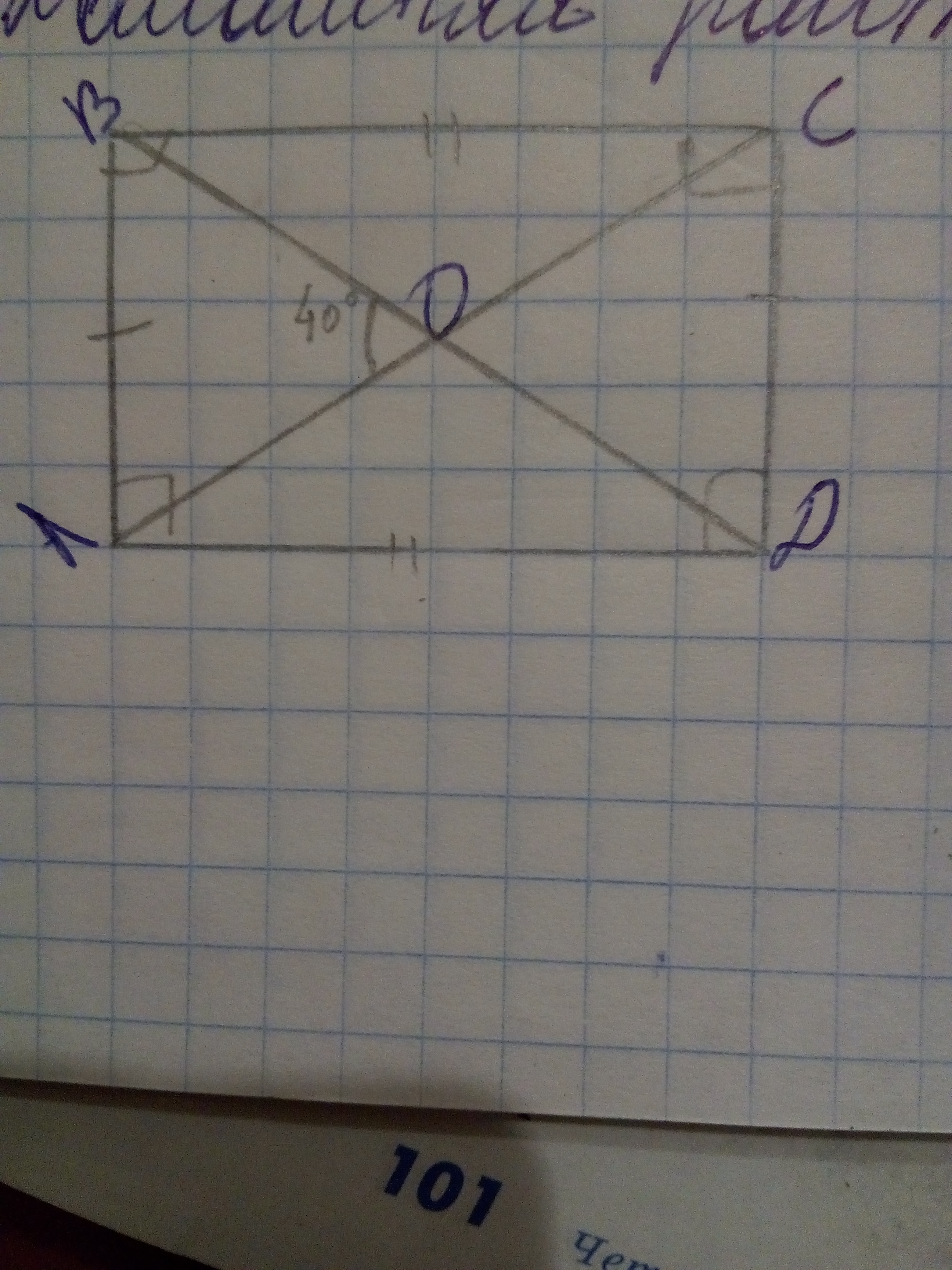 Диагонали прямоугольника равны, в точке пересечения делятся пополам ⇒ ΔАОВ - равнобедренный с основанием АВ.