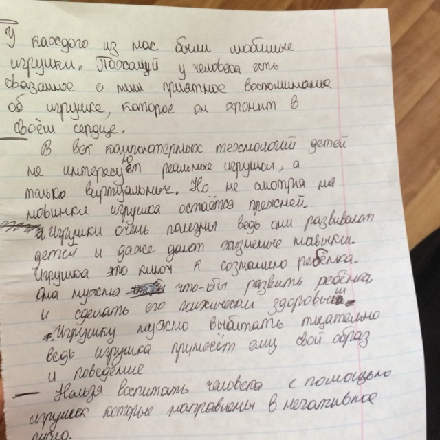 Предпоследнее предложение: "Игрушку нужно выбирать тщательно, ведь игрушка составит его образ и поведение"- пунктуационная и речевая ошибка