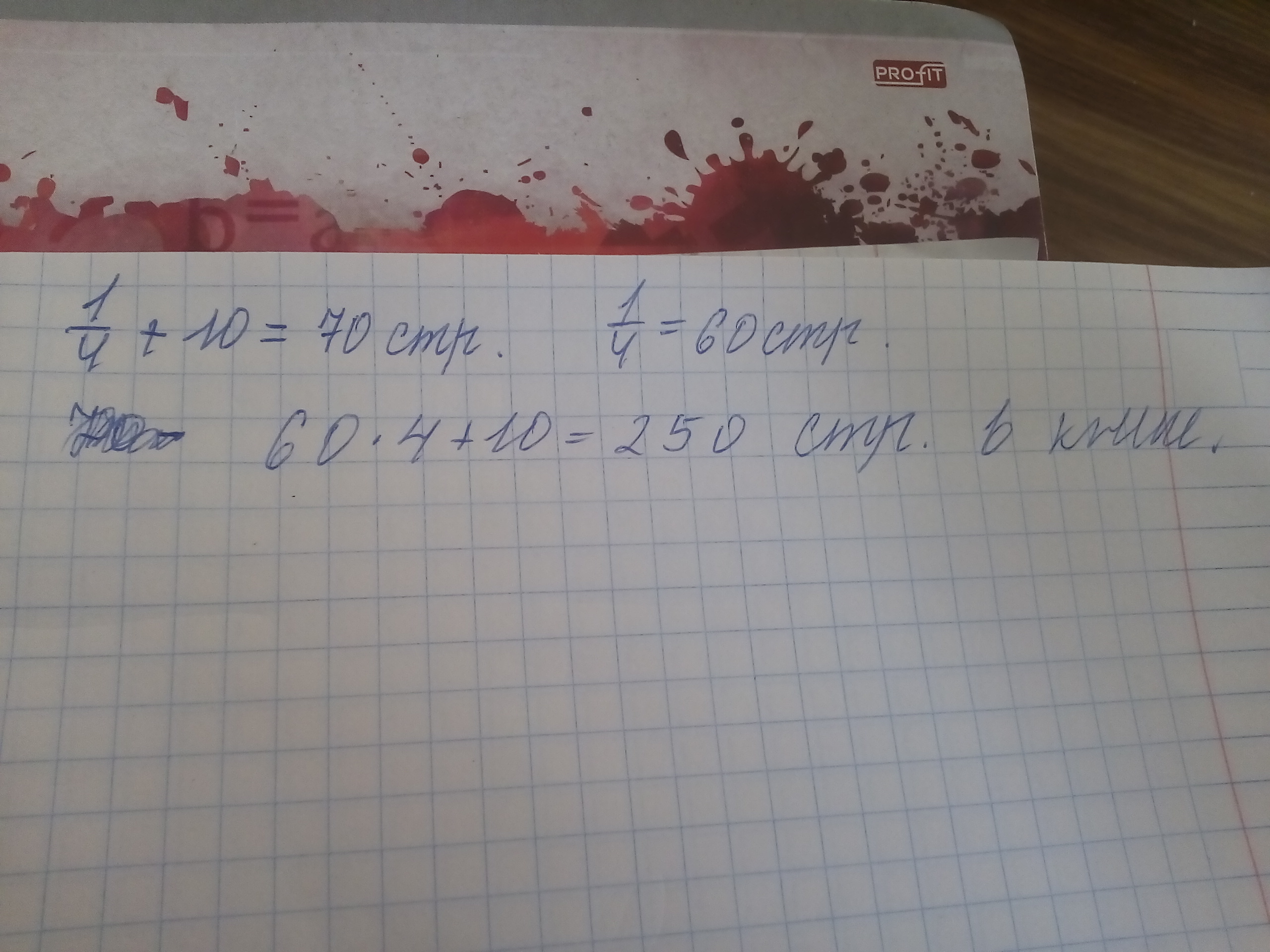 Задача:Мальчик прочитал четвёртую часть книги и ещё 10страниц,что составило 70 страниц.Сколько страниц в книге?
