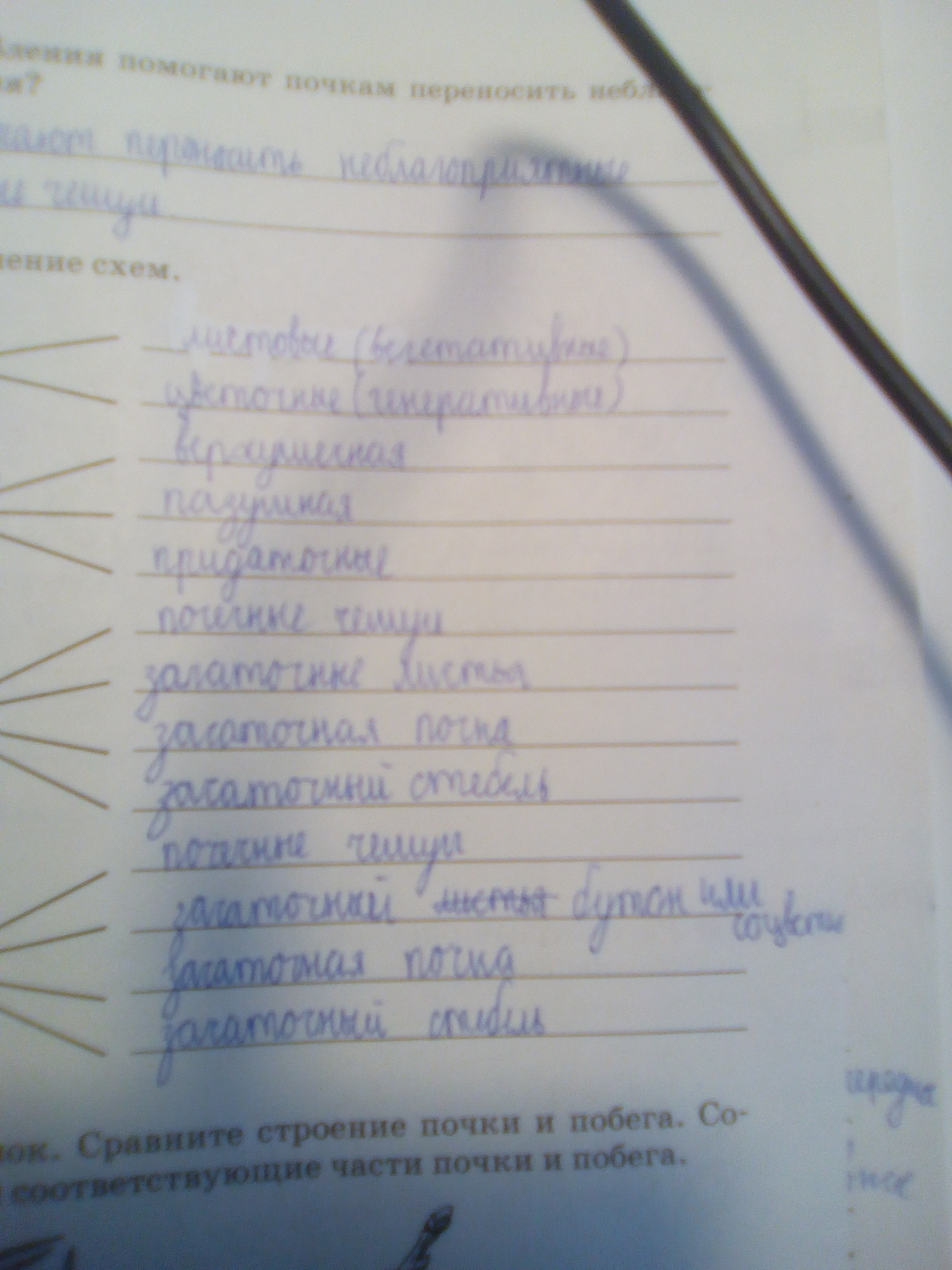 Закончите заполните схем: виды почек по строению; по расположения на стебле; строение почек вегетативная; генеративная: