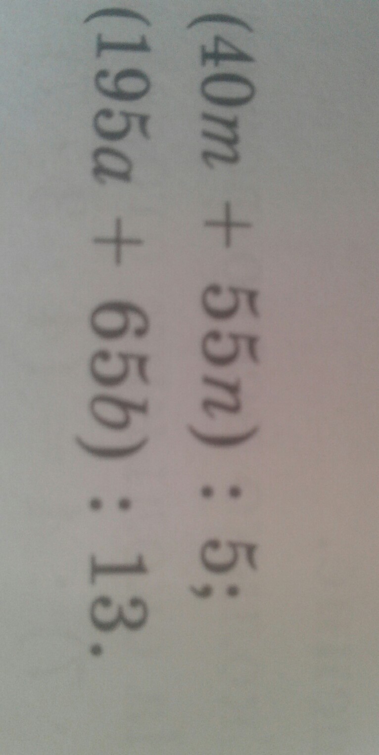 выполни деление (40m+55n)÷5 (195a+65b)÷13 тема называется основные свойства делимости