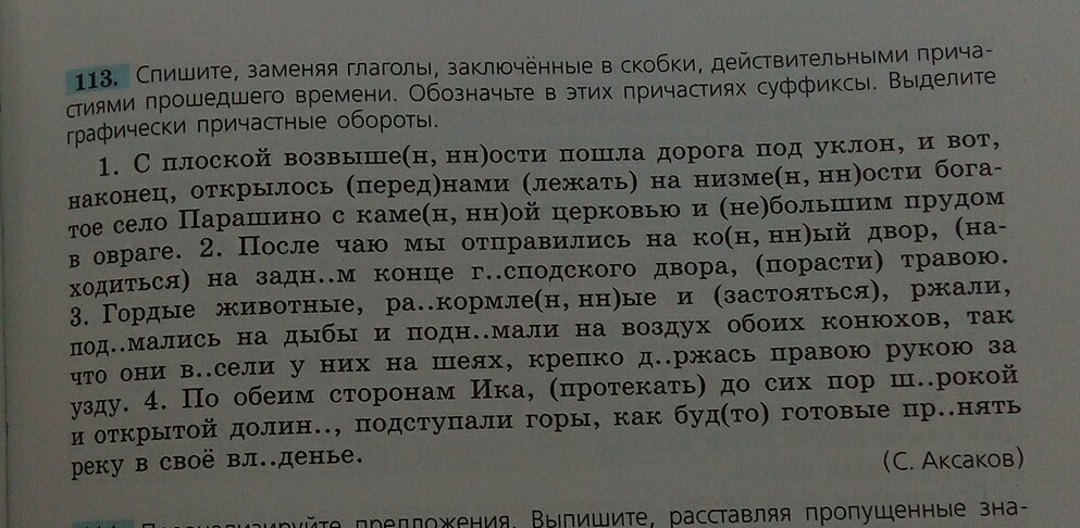 Спишите, заменяя глаголы, заключенные в скобки, действительными причастиями прошедшего времени. Обозначьте в этих причастиях суффиксы. Выделите графически причастные обороты.