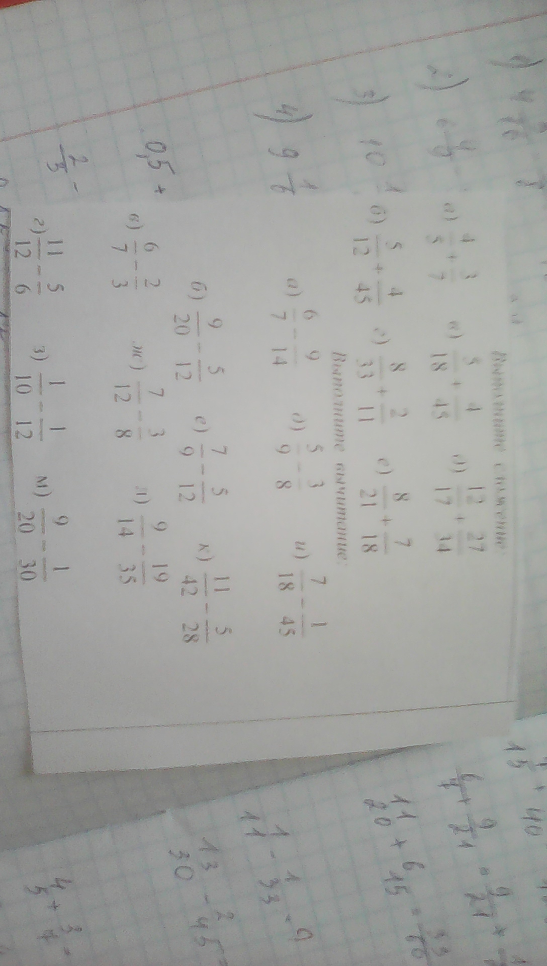 а) 4/5 + 3/7 = 43/35 = 1 целая 8/35