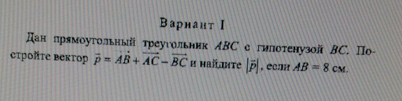 Вектор имеет длину равную двойной длине гипотенузы АВ. Смотрите. АС - ВС = АВ. Тогда АВ + (АС-ВС) = АВ+АВ = 2АВ. То есть вектор направлен как АВ и имеет длину в два раза больше.16 см