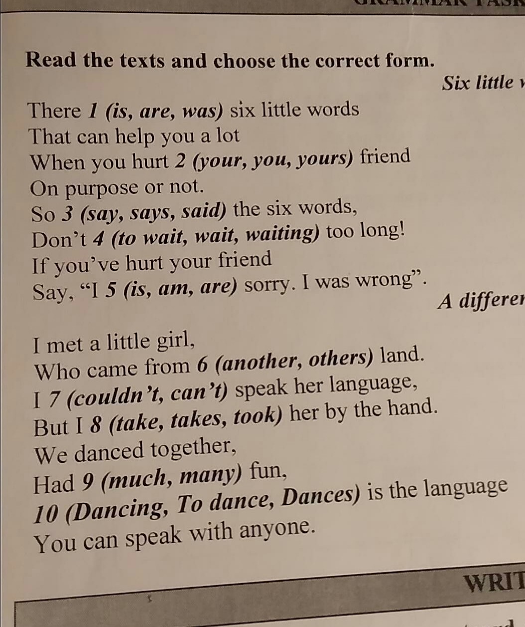 1)are 2)your 3)say 4)wait 5)am 6)another 7)couldn't 8)took 9)much 10)Dancing