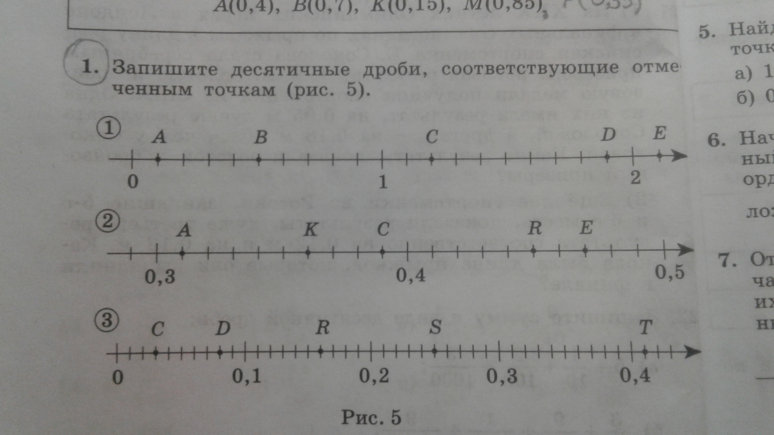 Запишите десятичные дроби, соответствующие отмеченным точкам (рис. 5)