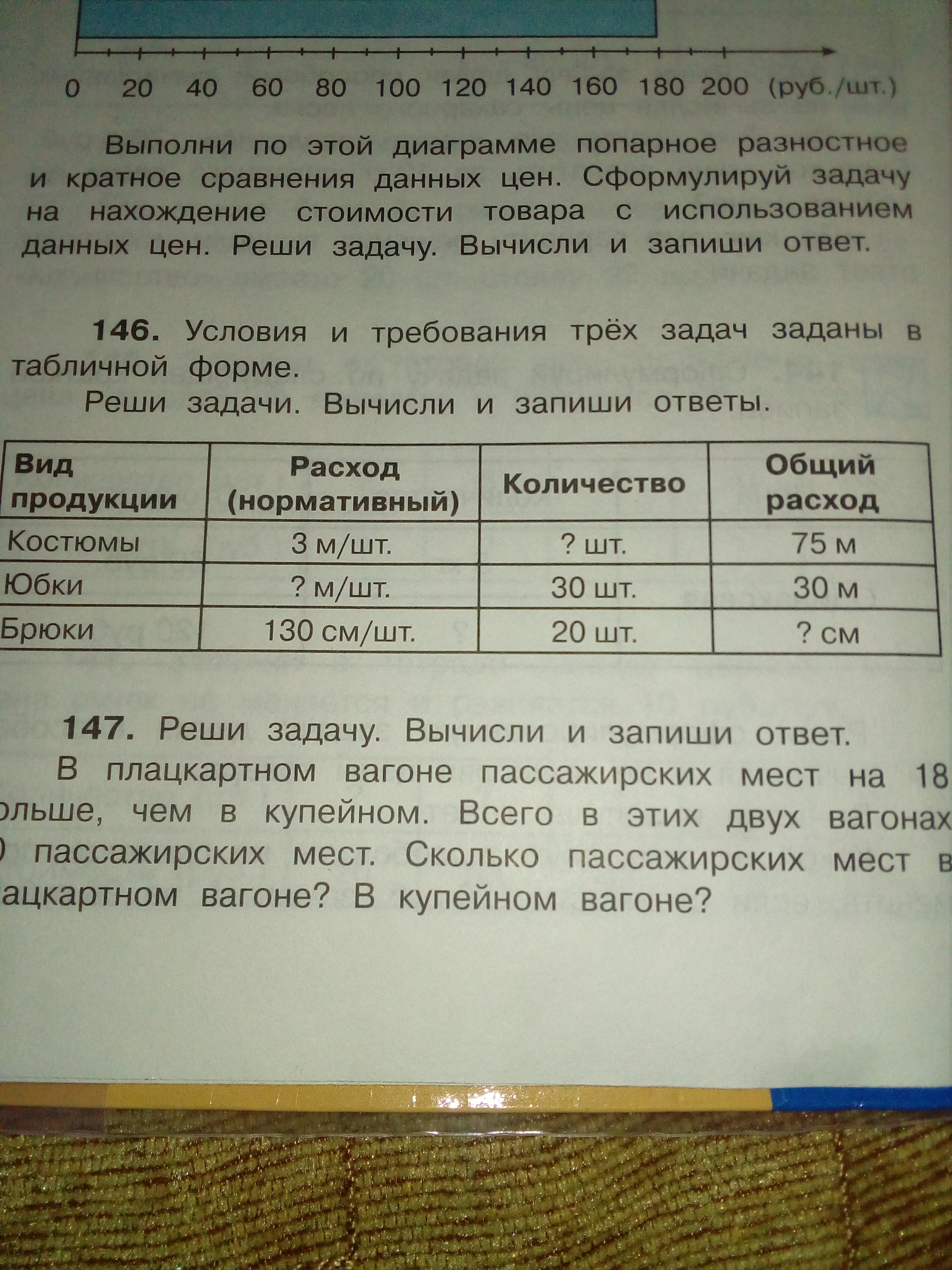 Условия и требования трех задач заданы в табличной форме. Решение задачи . Вычисли и запиши ответы.