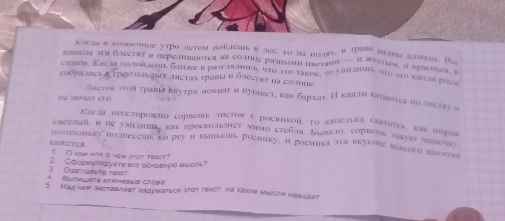 1. Текст о капельках росы, которые остались после дождя и об их необычайной красоте.