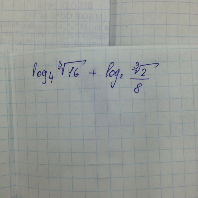 log_{4} sqrt[3]{16} +log_{2}frac{ sqrt[3]{2}}{8}=log_{4} 4^frac{2}{3}+log_{2}frac{ 2^frac{1}{3}}{2^3}=frac{2}{3}log_{4} 4+log_{2}2^{-frac{7}{3}}=frac{2}{3}-frac{7}{3}=-frac{5}{3}=-1frac{2}{3}