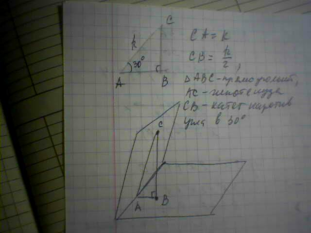 на грани двугранного угла величиной в 30 градусов дана точка С удаленная от ребра на расстоянии К. Найти расстояние от этой точки до другой грани?