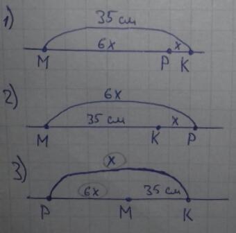 MK = 35см. Пусть KP = x, тогда MP = 6x.