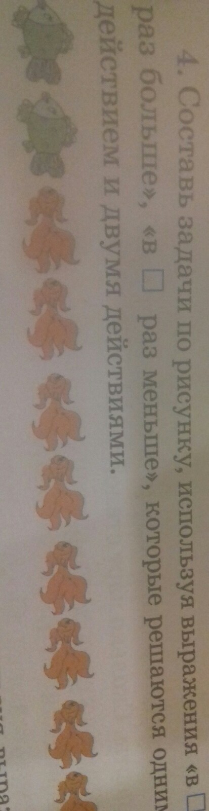 задачи по рисунку используя выражения в раз больше в разы меньше которые решаются одним действием и двумя действиями