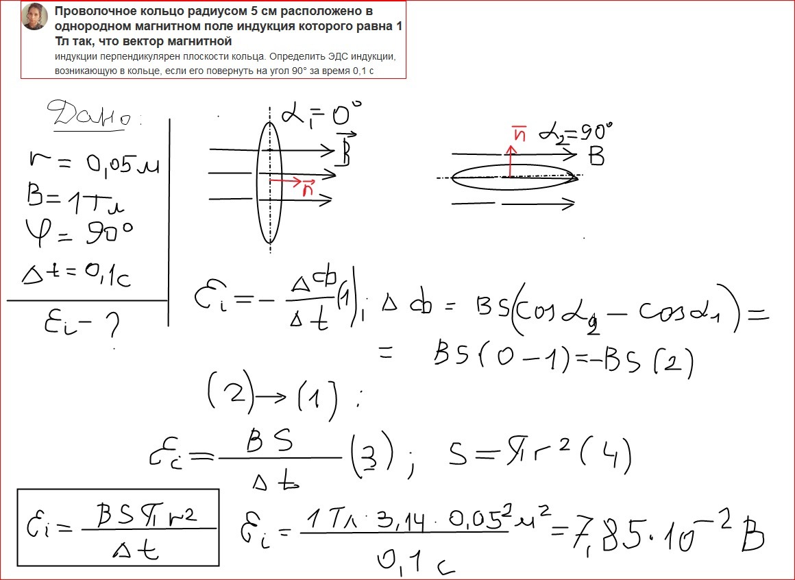 В однородном магнитном поле с индукцией 40 находится плоский Контур в виде кольца радиусом 5 см изготовлена из тонкой проволоки сначала конту располагается Так что линии индукции магнитного поля перпендикулярно плоскости к разъему кольцо поворачивается вокруг его диаметра на угол 120 найти модуль изменения потока вектора магнитной индукции через кольцо При таком повороте ответ выразите в м п округлите до целого числа