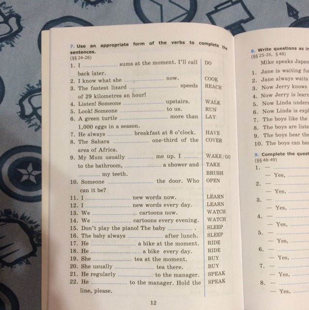2 is cooking 10 is opening 19 is buying