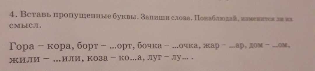 Борт-Корт,Бочка-Дочка,Жар-Пар,Дом-Сом,Жили-Пили,Коза-Когда,Луг-Луп