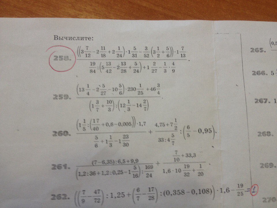 Решение 258 номера по действиям