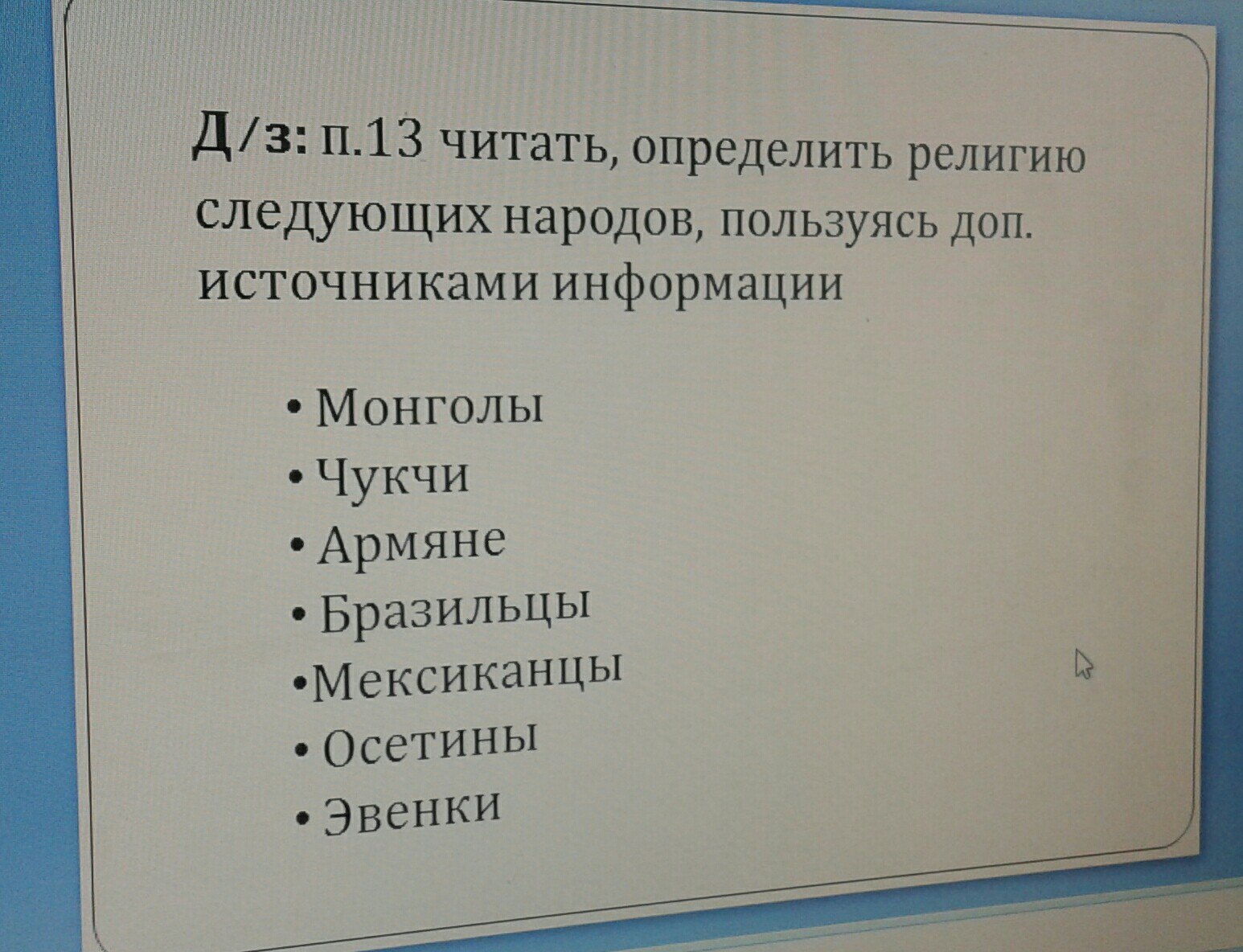 определите религию след. народов: