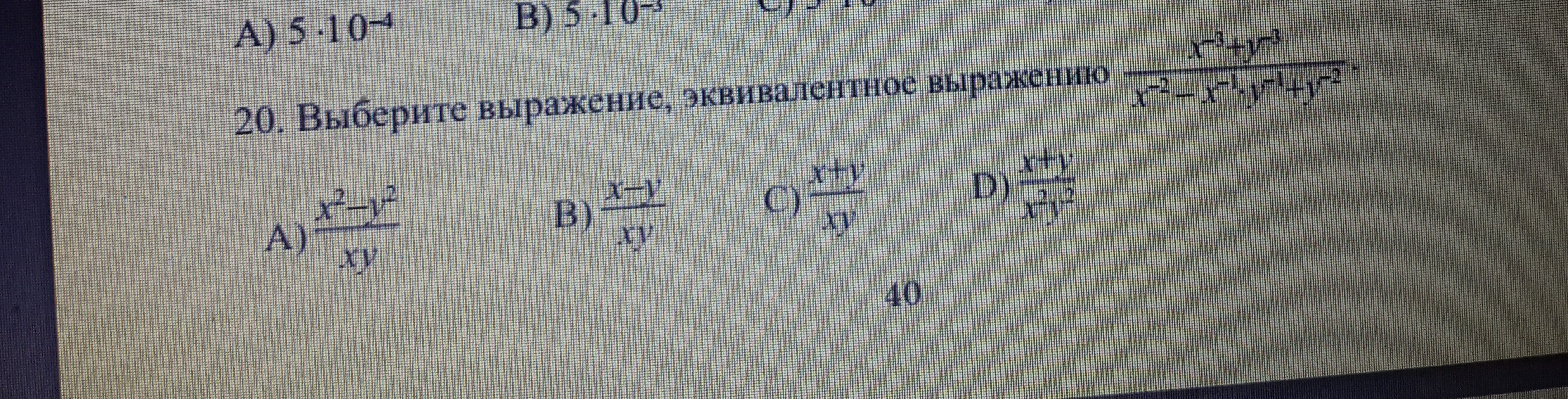 Ответ будет с) у+х :ху