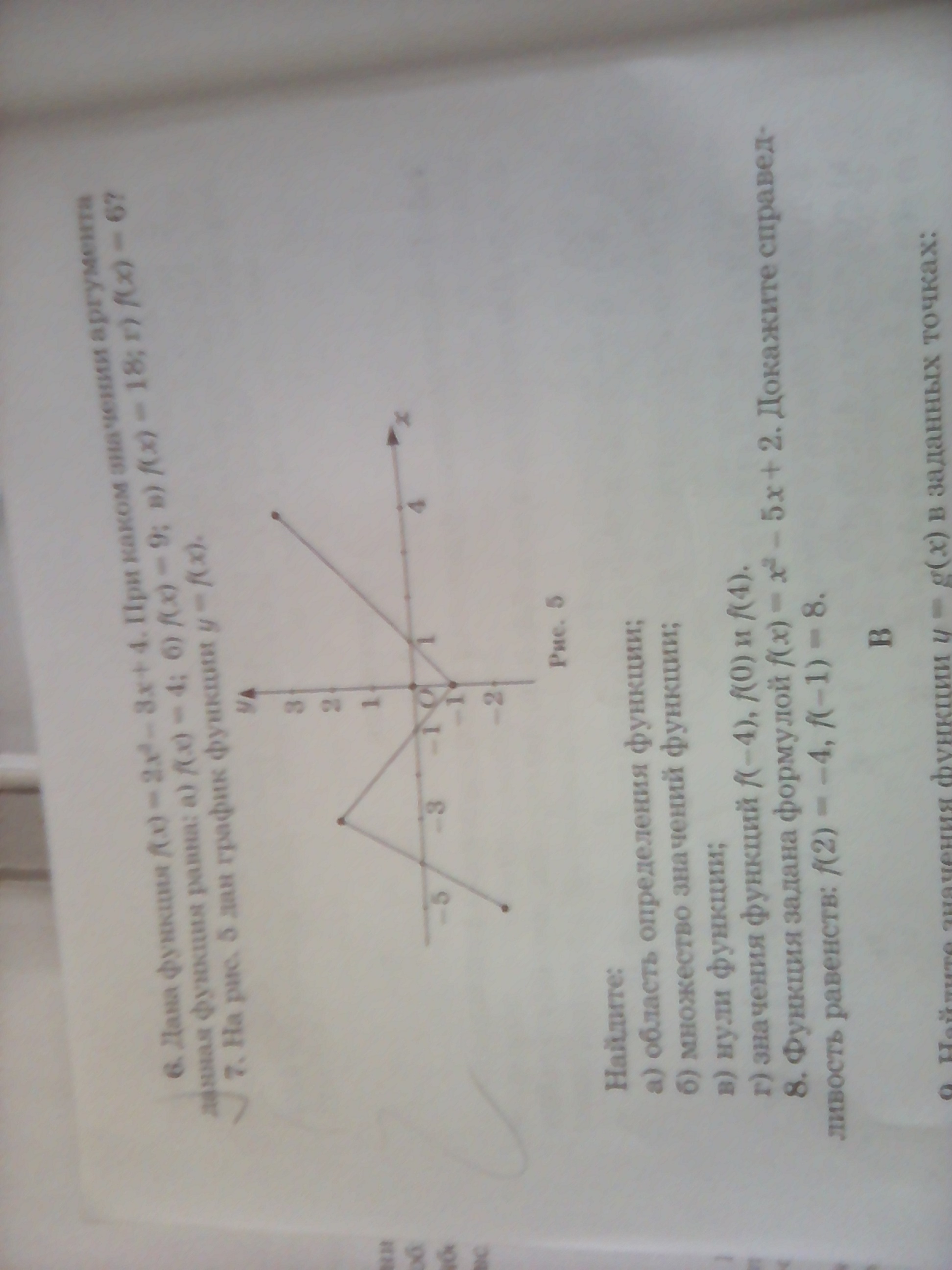 г) f(-4)= 0; f(0)= -1; f(4)= 3;