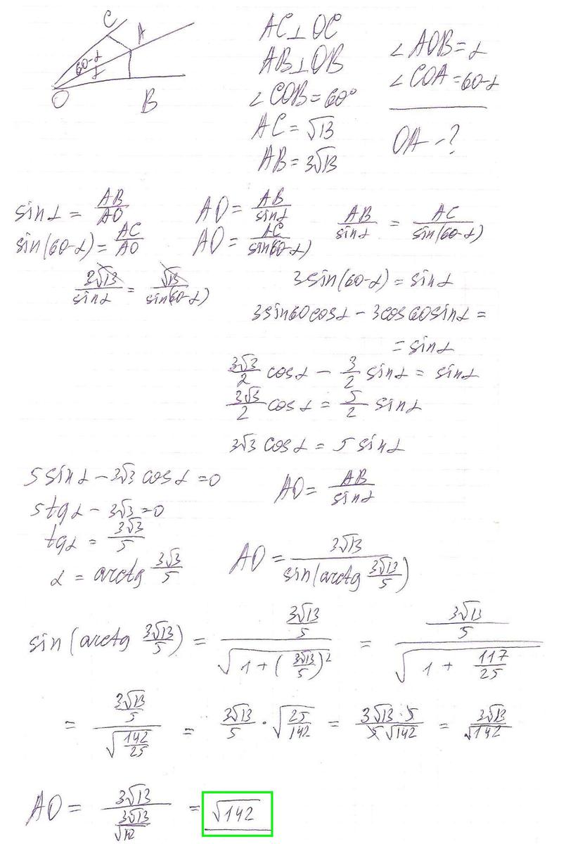 от сторон угла. Найдите расстояние от этой точки до вершины