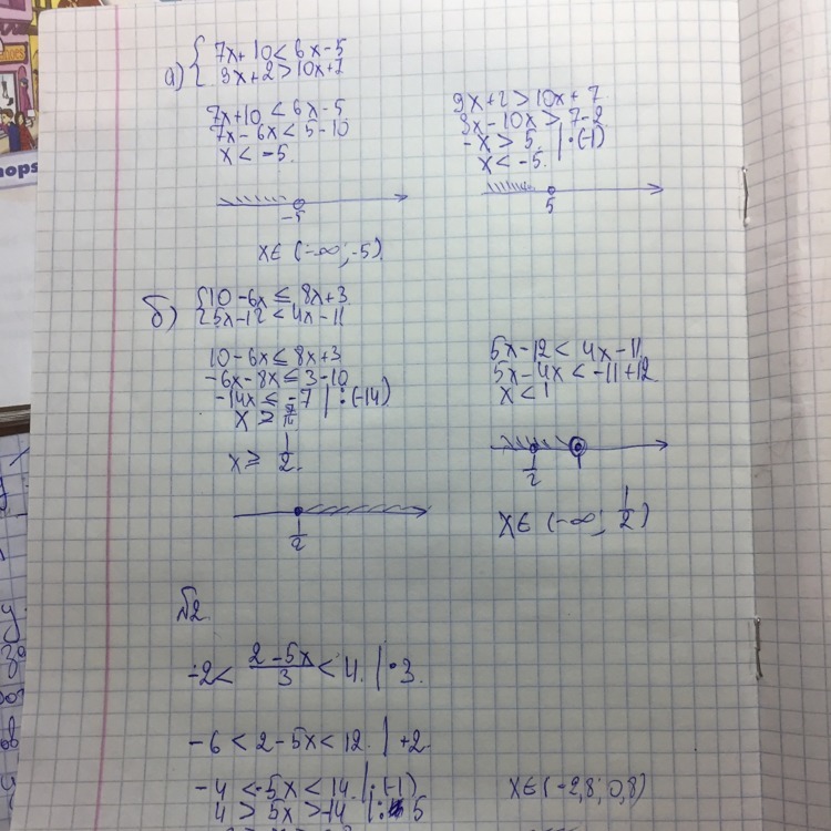 1. а) 7х+10<6x-5 < => 7x-6x<-5-10 <=> x<-15
