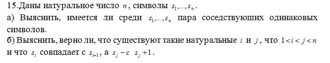 а) Выяснить, имеется ли среди s....sn пара соседствующих одинаковых символов.