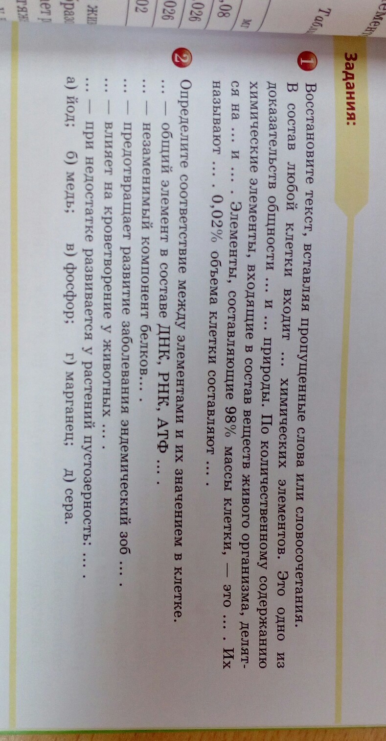 Много, живой и неживой, органические и неорганические, водород кислород углевод, калий фосфор,