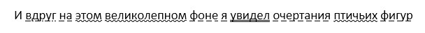 Разбирать предложения по членом предложении-и в друг на этом великолепном фоне я видел очертания птичых фигур