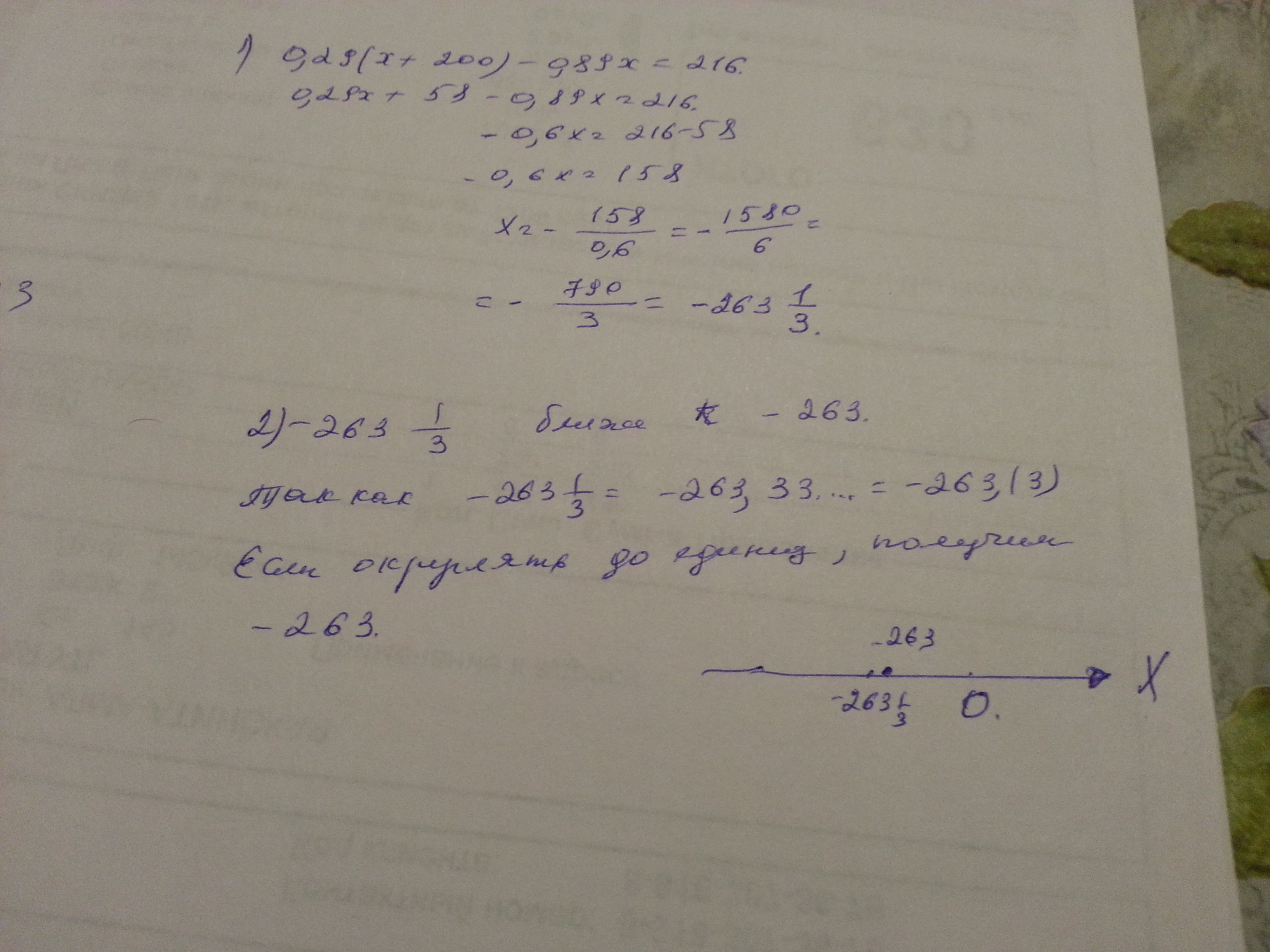 Решить уравнение 0,29(x+200)-0,89x=216. Найти ближайшее к его корню целое число: 1)-46 2)-457 3)-26 4)-263