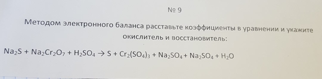 Na2Cr2O7 + 3Na2S + 7H2SO4 = 3S + Cr2(SO4)3 + 4Na2SO4 + 7H2O