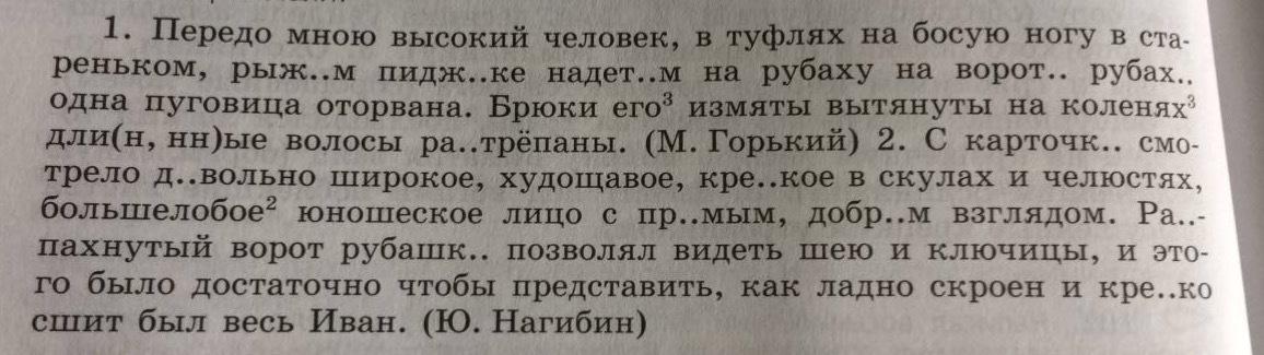 1. Надетом, измяты, оторвана, вытянуты, растрёпаны.