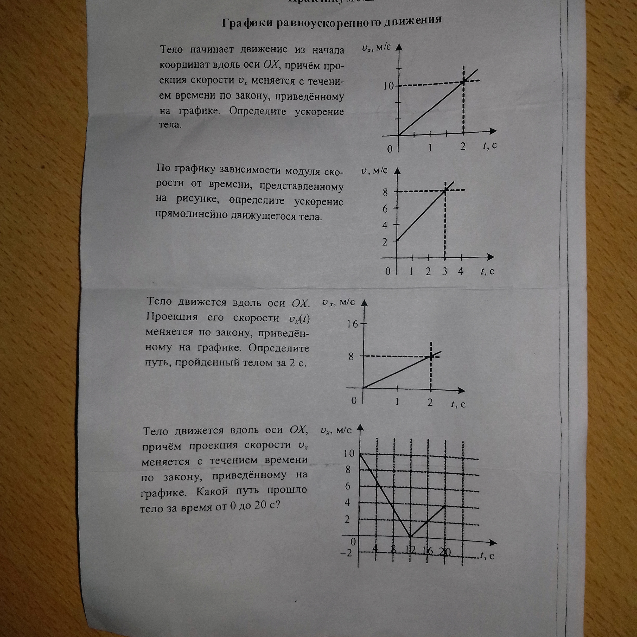 Берем две точки на графике и опускаем перпендикуляры на оси времени и скорости и находим ( для удобства берем начало координат и последнюю оцифрованную точку 10) что получаем