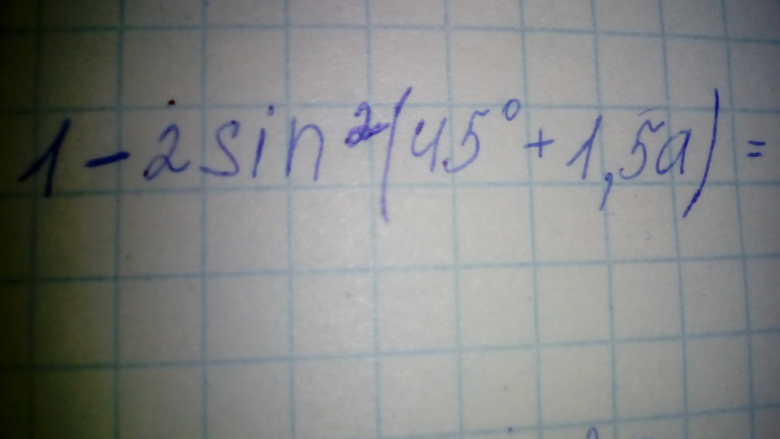 1-2sin^2(45°+1,5a)=cos(2(45°+1,5a))=cos(90°+3a)=-sin(3a)=-(3sina-4sin^3a)=4sin^3a-3sina