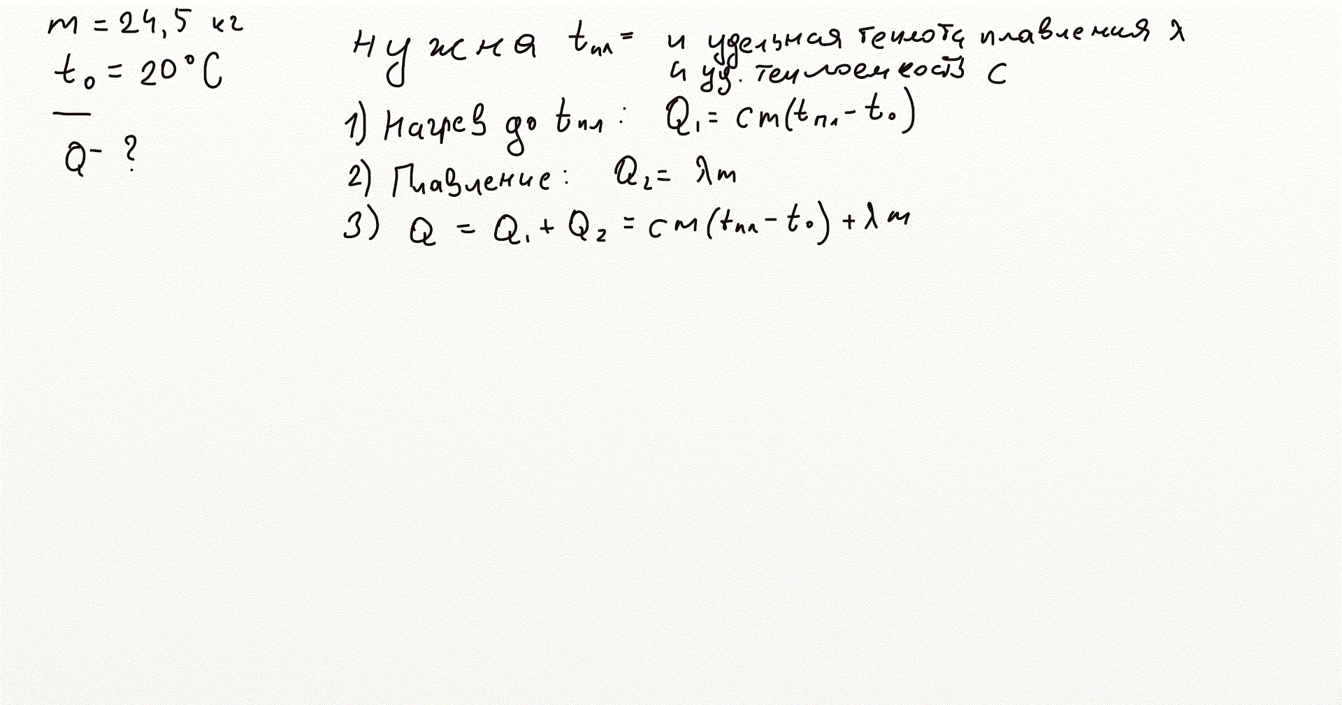 Какое количество теплоты потребуется для плавления 24,5 кг алюминия, взятого при температуре 20°С ? Желательно с Дано)