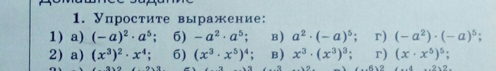 г)(-а²)•(-а)⁵=а²•а⁵=а⁷